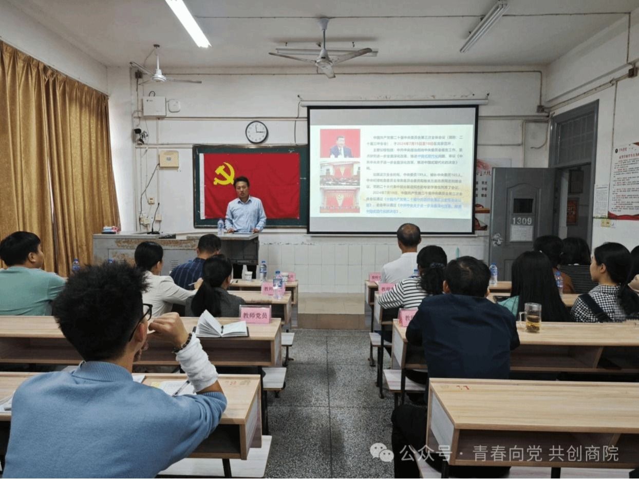 为深入学习贯彻党的二十届三中全会精神,2024年10月8日16:00,公司党委在跬步楼1309教室开展“从党的二十届三中全会精神看教育强国之路”主题党课。本次党课由公司党委委员、宣传部部长曾敏主讲,公司党委书记刘根林及PA视讯全体党员老师出席,部分员工党员及入党积极分子参与。