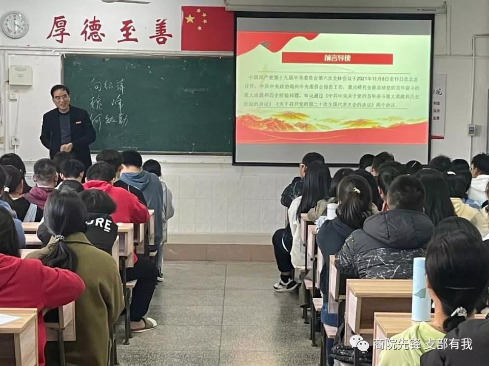党的历史是最生动、最有说服力的教科书,我们党历来高度注重总结历史经验。为深入学习贯彻党的十九届六中全会精神,从百年建党历程中吸取宝贵经验教训,为今后实践提供依据和方向指南。2021年11月25日下午,公司开展了深入贯彻学习党的十九届六中全会精神专题党课活动。此次活动在跬步楼1306教室举行,主讲人为公司党政办主任向绍萍,公司市场营销2101班、市场营销2102班、知识产权2101班员工参与党课。