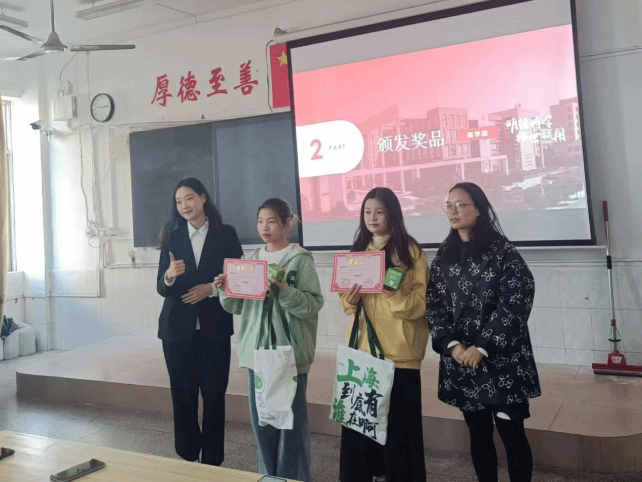 在颁奖典礼上由团委书记易晶晶老师和链家公司代表为获奖人员颁奖并合影留念。