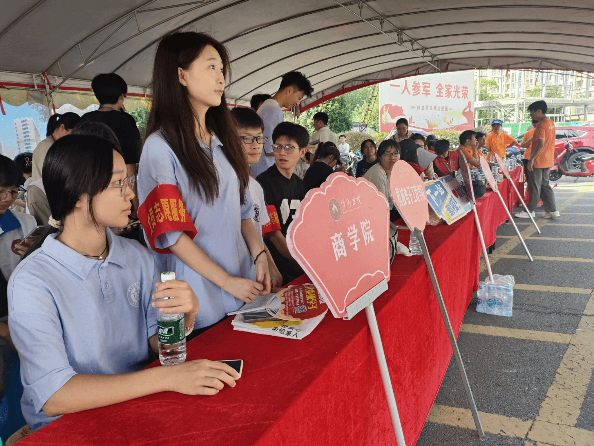 清晨的阳光透过树叶的缝隙,洒在忙碌而有序的迎新现场上。迎新工作人员们身着统一的服装,脸上洋溢着热情的笑容,穿梭于人群中,耐心地为新生提供着指引和帮助。从报道盖章、领取物资到宿舍安排,每一个环节都有志愿者引导,井然有序,让初来乍到的新生感受到了家的温暖。最后,完成报道的新生们排队在“来和商院比个✌”的站牌旁打卡,希望定格新生活即将开始的喜悦。新生家长表示:“公司的安排很周到,感受到了公司对孩子们满满的重视。”