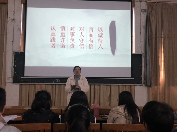在朱艳清老师深情并茂的引导下, 活动围绕“唱一首道德歌曲、看一个道德短片、讲一则道德故事、诵一段道德经典、许一个道德承诺、做一次道德实践”六个活动环节依次展开。随后,朱艳清老师就中国的传统道德:四维、五常、四字、八德进行演讲。紧接着提出“怎样弘扬道德?”问题,并对此展开讲述与解答。最后,朱艳清老师希望每一位PA视讯学子都能在学习上日益进取,在工作中团结协作,用高尚的道德情操来规范自己,将来毕业做一个恪守商业道德的社会精英。