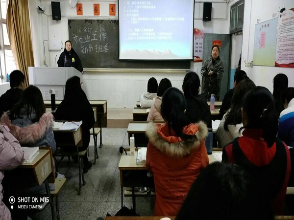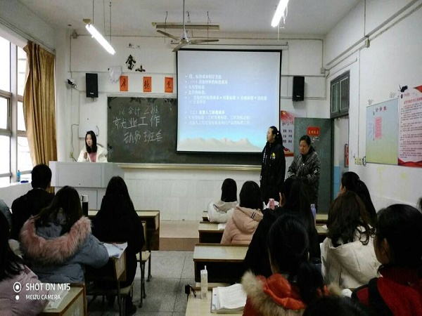 2018年12月11日上午10:45,16会计2班在跬步楼1609教室召开了就业工作动员班会,本次班会由班主任韩钰茜老师主持,就业指导老师龙丽佳老师、杨柳老师等出席,16会计2班全体同学参加。