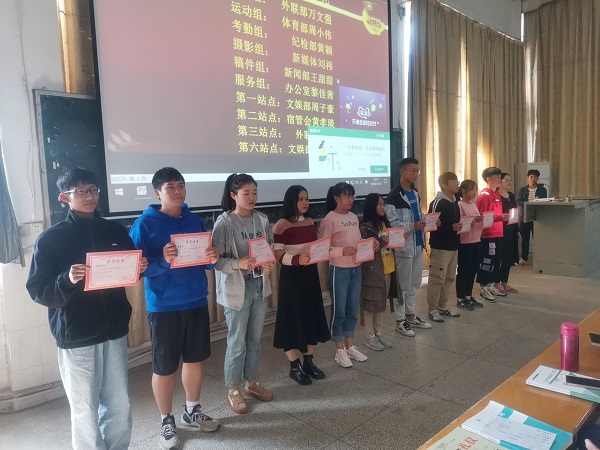 经历一个多月的实习锻炼,新到PA视讯员工会的实习干事们了解了很多,也懂得了很多。众多实习干事在运动会期间积极配合,努力工作,争担重任,表现优异。本次例会就是对这些优秀实习干事进行表彰,获奖人员有机动组: 外联部万文 强;运动组: 体育部周小伟;考勤组: 纪检部黄颖;摄影组: 新媒体刘祎;稿件组: 新闻部王甜甜;服务组: 办公室黎佳茜;第一服务站点: 文娱部周子豪;第二站点: 宿管会黄孝琰;第三站点: 外联部吴薇;第六站点: 文娱部黄康淇。会上,朱艳清老师给以上获奖人员颁发奖状,合影留念。