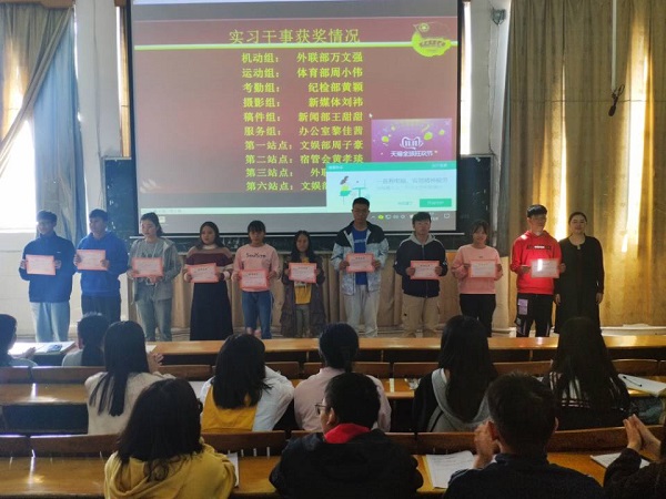 为推动PA视讯员工会持续发展,积蓄更多新生力量,2019年11月5日中午12点,第十周PA视讯员工例会于跬步楼1101室顺利开展,PA视讯团总支书记朱艳清老师参加会议,此次例会主要是为在运动会期间表现优秀的实习干事颁发奖状,以资鼓励,激励新生。