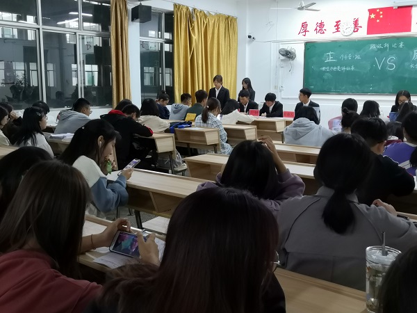 2019年10月30日晚上19:10,在公司跬步楼1306教室举行了PA视讯19市场营销一班与19市场营销国际一班友谊辩论赛。此次辩论赛有幸邀请到优秀辩手担任评委。由正方辩手组成的市营一班队和由反方辩手组成的市营国际一班队通过辩题“长生不老是不是一件好事”展开激烈辩论。