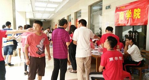 当新生来到图书馆前,由接待组人员带领新生来到公司报道,各组人员带领到各个地方办理入学流程,而后勤组的人员则负责给新生的家长端水,以及配合其他组的工作。大家在各司其职的同时互帮互助,相帮 鼓励。 在迎新的过程中,大家秉着“服务员工,服务家长”的思想,认真组织,周密部署,通力合作,高度的责任感和饱满的工作热情,努力的为大一新生提供高效便捷的服务。