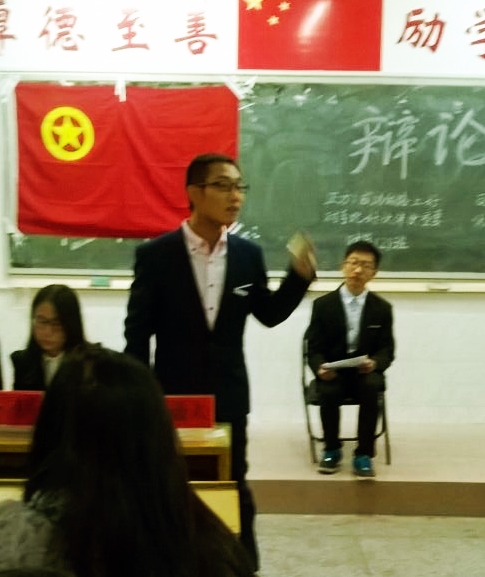 这次辩论赛的主题为"成功路上,好对手重要还是好伙伴重要。"正方为财管二班,辩题为成功路上,好对手比好伙伴重要;反方为财管一班,辩题为好伙伴比好对手重要。 双方都西装革履,信心满满,准备就绪。场下观众激动不已,等待着观看这场不一般的比拼,全场好似弥漫着一股硝烟的气息。19:20主持人宣布辩论赛开始。首先由双方一辩开始陈词。正方一辩语速很快,在场的我们根本跟不上她的节奏。但是反方一辩丝毫没有受到惊吓,而是很自信的,有理有据的反驳了正方。最让在场观众期待的还是自由人的发言。自由人是团体里最重要的组成部分,是克敌制胜的砝码。双方自由人都很厉害。正方说完,反方立马就接上来反驳。这样一来二去,直到时间结束。他们没有手稿,而是靠脑袋灵活反应。双方观众都为自己班占得上风而欢呼雀跃,这也是集体的团结。双方三辩作完总结陈词后,主持人宣布辩论赛结束。最后,主席赖昭坚对本次辩论赛进行点评。