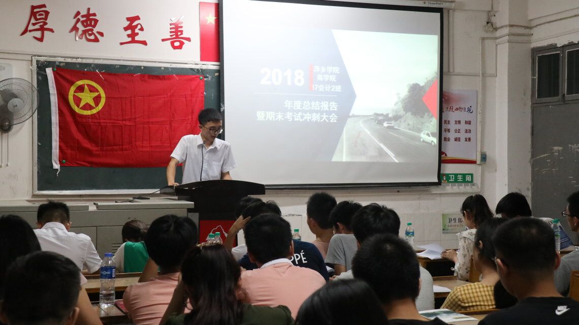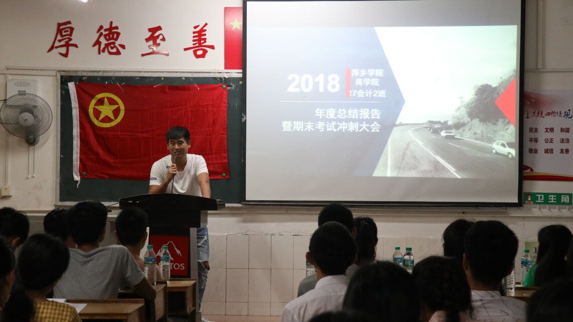 为了让我们同学在今后能够更加的身心投入到各个方面的学习发展中去。2018年6月20日晚上,由PA视讯17会计2班班委组织全班同学举行“2018PA视讯17会计2班年度总结报告暨期末考试冲刺大会”