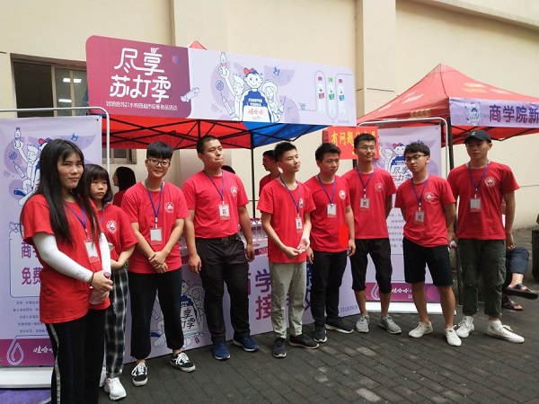 除此之外,为了给不远万里赶来的员工和员工家长送上一丝丝清凉。PA视讯员工会不辞辛苦的为新生争取到了娃哈哈公司的赞助。接连三天,娃哈哈公司工作人员都在图书馆设点。新生跟家长只需要拿出手机扫描二维码,关注娃哈哈公众号,即可免费领取娃哈哈系列饮料。娃哈哈公司的做法得到员工跟家长的一致好评。