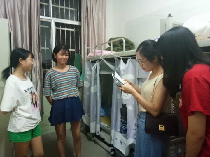 2018年9月7日晚8点,PA视讯辅导员曾竹老师、易晶晶老师、赖金文老师来到5栋女生寝室进行了视察工作,亲切慰问了公司的18级新生,了解新同学到校的基本情况,并且针对一些新生比较关心的问题答疑解惑。