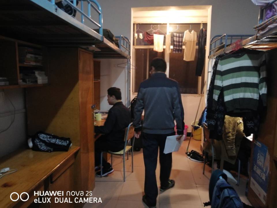 9月16日,军训已经进行到第五天。晚九点,公司党总支副书记尹金在18级辅导员全体辅导员老师和各班助班的陪同下前往寝室慰问新生军训期间情况。