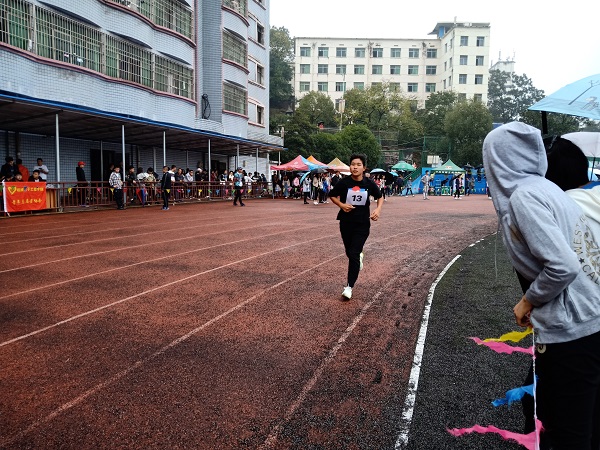 在比赛前参赛选手们迅速带上号码牌,并且站到自己的跑道,虽然天空飘着小雨,但他们的激情却丝毫没受天气的影响,选手们矫健的步伐,让周围很多观看的同学们感叹不已,第一圈跑完后大多数选手已经感到有点累了,并且开始放慢了步伐,然而这个时候邱丽娇依然迈着稳健的步伐和带着自信眼神向前跑着,一次次的超越了前面的同学,场下的同学也在为她加油呐喊。随着周围的呐喊声不断涌现,运动健儿们在你追我赶中加速奔跑,在偌大的足球场上那是一道引人瞩目的风景!
