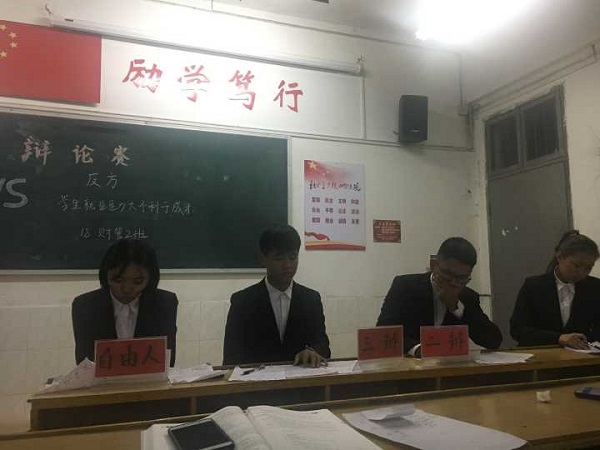 两队以“员工就业压力大是否有助于成才”为辩题,18财管2班为本次的正方辩手,论题为“员工就业压力大有利于成才”,反方辩手为18酒管,论题为“员工就业压力大不利于成才”。双方就各自论题展开了激烈的争辩,辩手们正装出席,正襟危坐,双方都毫不示弱,发表各自论点,一个个辩手思维缜密,虽有些许紧张,依旧淡定自如。18财管2班辩手妙语连珠,对己方观点多方论证,唇枪舌战,看得现场观众佩服连连,掌声不断。经过几轮白热化的角逐,最后,18酒管班级的辩手只得甘拜下风,评委鼓励其继续努力,同时宣布18财管2班夺得此次辩论赛的胜利。