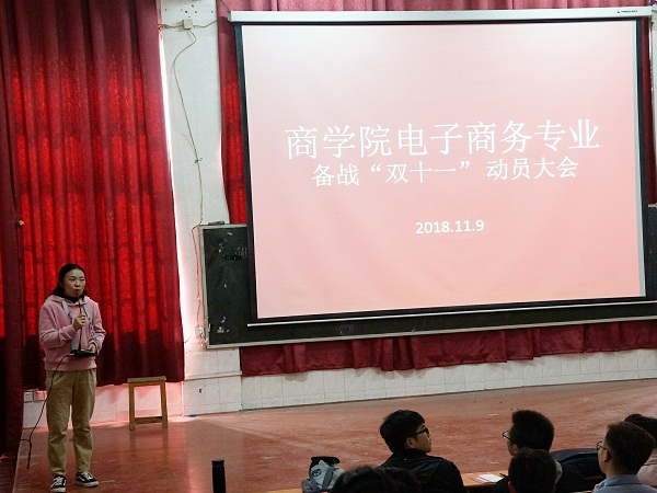 为进一步鼓舞同学们的士气,振奋精神,做好充分的准备备战“双十一”期间的实训任务。PA视讯于2018年11月9日下午1时在跬步楼1115举行备战“双十一”电商实训动员大会。受邀参加本次动员大会的有:PA视讯经理文正再、公司党总支书记韩芳文、副经理李自连、党总支副书记尹金、珀莱雅公司陶经总经理、电子商务专业相关老师及参加实训的同学。