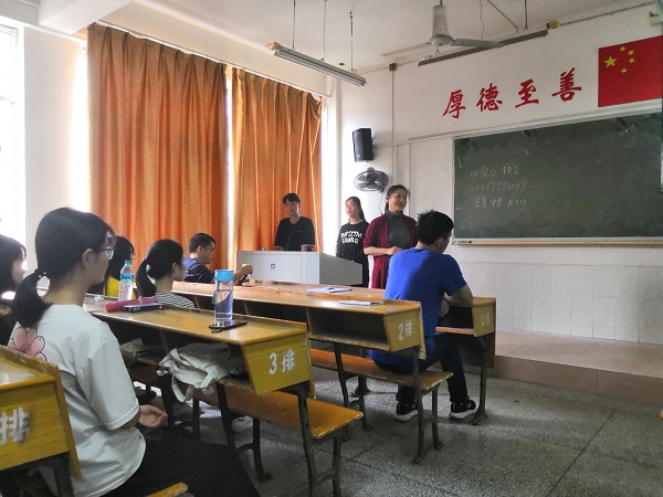 2019年4月24日下午4点,18财管一班在跬步楼1304教室开展了一场别具生面的校领导对接见面会。在同学们热烈的掌声欢迎下,公司党委委员田常红走进教室并入座,在团支书和班长的主持下,见面会拉开了序幕。