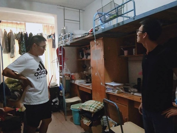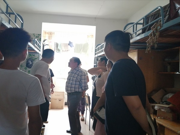 新学期伊始,为了解商院员工在校的住宿条件和生活状况,给同学们创造良好的校园生活环境。8月31日下午,公司党总支书记韩芳文,党总支副书记尹金,团总支书记朱艳清,员工党支部书记易晶晶、辅导员赖金文、杨柳、曾竹和李晨以及胡桑老师下到员工宿舍,对同学们表示关切问候。