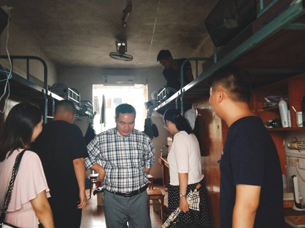 新学期来即,为知晓在校商院学子的住宿条件,给同学们构建良好的寝室环境建设。9月1日下午,公司党总支书记韩芳文,党总支副书记尹金,团总支书记朱艳清,员工党支部书记易晶晶、辅导员赖金文、杨柳、曾竹和李晨以及胡桑老师下到员工宿舍,对同学们表示关切问候。