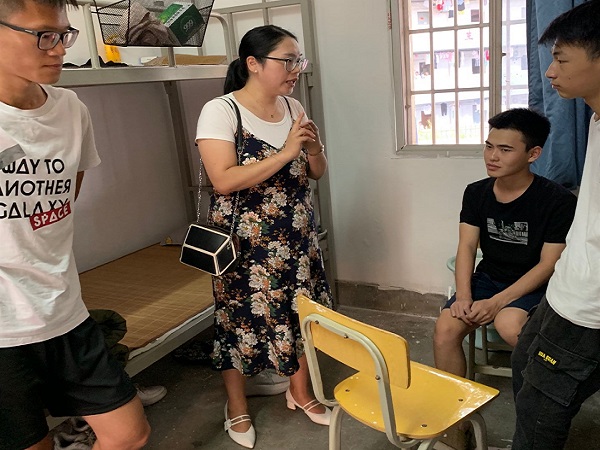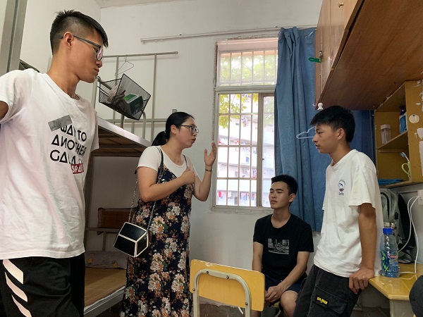 温情入寝室,关怀暖新生,为了了解19级新生的入住情况,让新生们尽快适应老员工活,2019年9月7日下午,PA视讯团总支书记朱艳清到三栋下寝慰问新生。