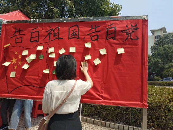 活动主要包括邀请同学们在便利贴上写下想对祖国说的话,而后贴在表白墙上,带动更多的人参与进来,激发同学们对祖国的认同感。