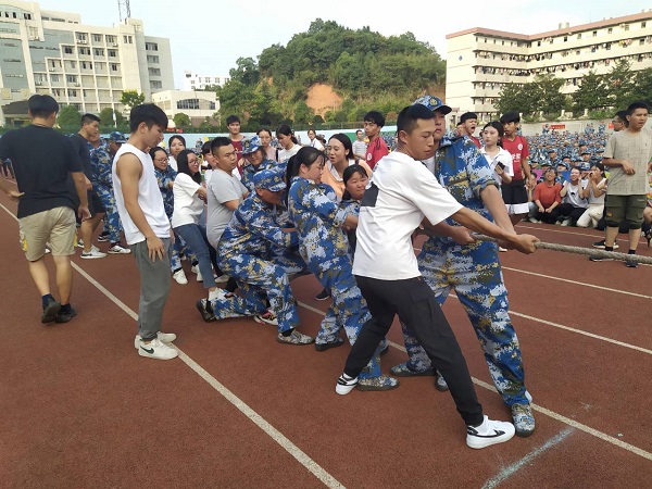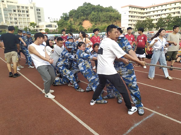为丰富新生军训生活,培养同学们坚持不懈、永不言弃的品质,2019年9月17日,19届新生在教官组织下于公司田径场上举行了一场拔河比赛。各教官担任裁判员,员工会各部门干事组织比赛、维持现场秩序。本次对阵的是PA视讯与体育公司。