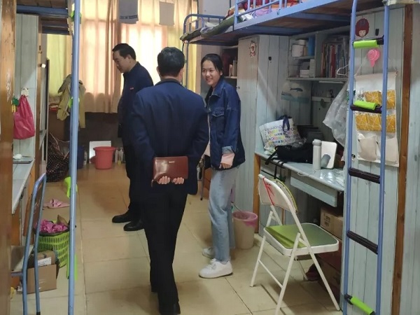 公司领导老师们对员工寝室进行检查走访,让同学们感受到领导老师们对员工的重视,体现了公司领导老师对员工的深切关怀,增进了师生间的感情。同时也对本科评估工作的开展起到了积极的推动作用。