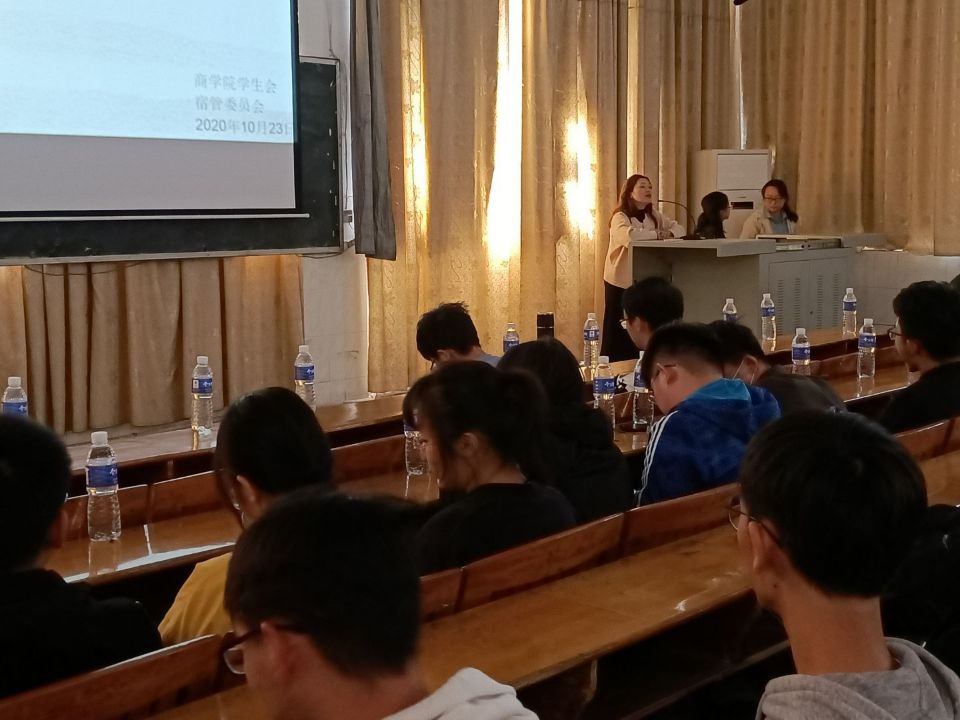 讲座的主题是“创造安全卫生宿舍,共享健康文明”。宿管会干事钟丽对做好寝室安全工作的要求进行一一说明,并且给同学们明确了宿管会的检查制度以及对寝室的报修问题作出相关解答。