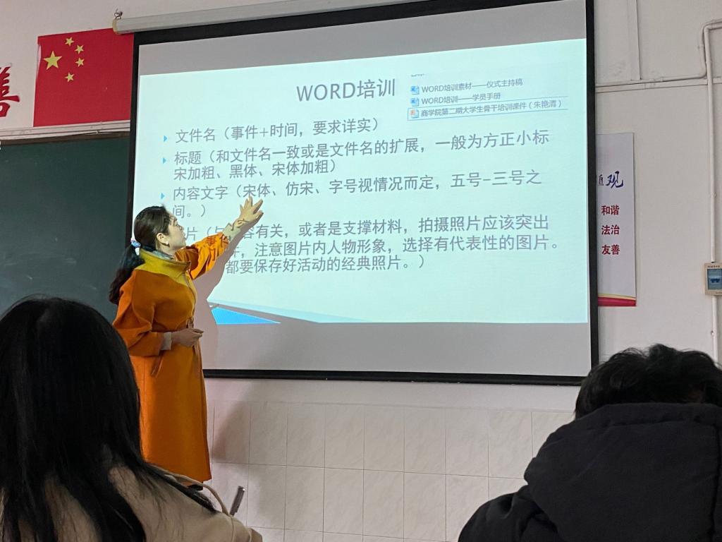 首先,朱老师明确员工干部的概念,同时指出员工骨干要有奉献意识,时间观念和饱满的热情,做一个有责任心的员工干部。而后,朱老师带领员工骨干学习《员工会,研究员工会干部自律公约》文件,给同学们明确了高素质的员工干部的标准。