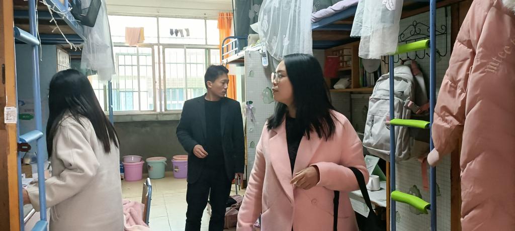 2021年3月2日下午,新学期伊始,公司党总支书记曾敏,辅导员易晶晶、杨丽梅、胡桑以及各班班主任一齐去到员工宿舍排查安全隐患。