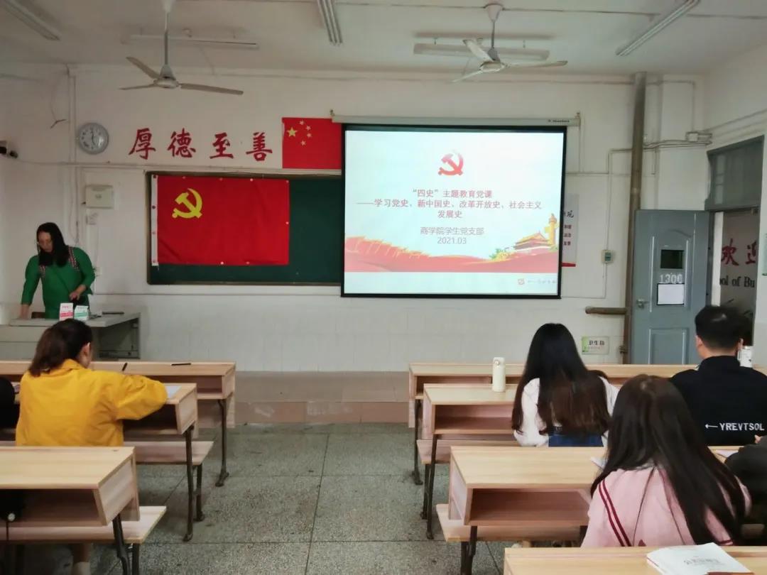 在此次党课学习中,易晶晶老师首先介绍了“四史”的组成部分,分别是党史、新中国史、改革开放史和社会主义发展史。紧接着易晶晶老师阐述了为什么要学习“四史”,谈到学习“四史”的原因时,易晶晶老师指出“学习领悟党史、新中国史是牢记党的初心和使命的重要途径。以史为鉴,方能牢记使命,坚定自身的理想信念,从而积极促进中国特色社会主义事业的发展。”最后,易晶晶老师介绍了我国历史上几个重要的历史阶段以及社会主义建设的前后两个30年,让我们愈发感受到了幸福生活的来之不易。