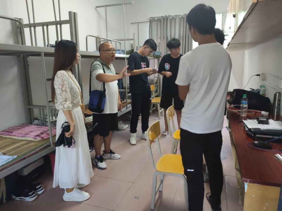 2021年9月12日下午,为深入了解新生入住情况,进一步加强管理,创建和谐、文明的寝室环境及尽早发现和解决员工寝室生活中存在的问题,公司领导老师们下寝了解员工寝室情况。参与此次下寝活动的领导老师有:党总支副书记吴华军,辅导员吴陈舒、杨丽梅。