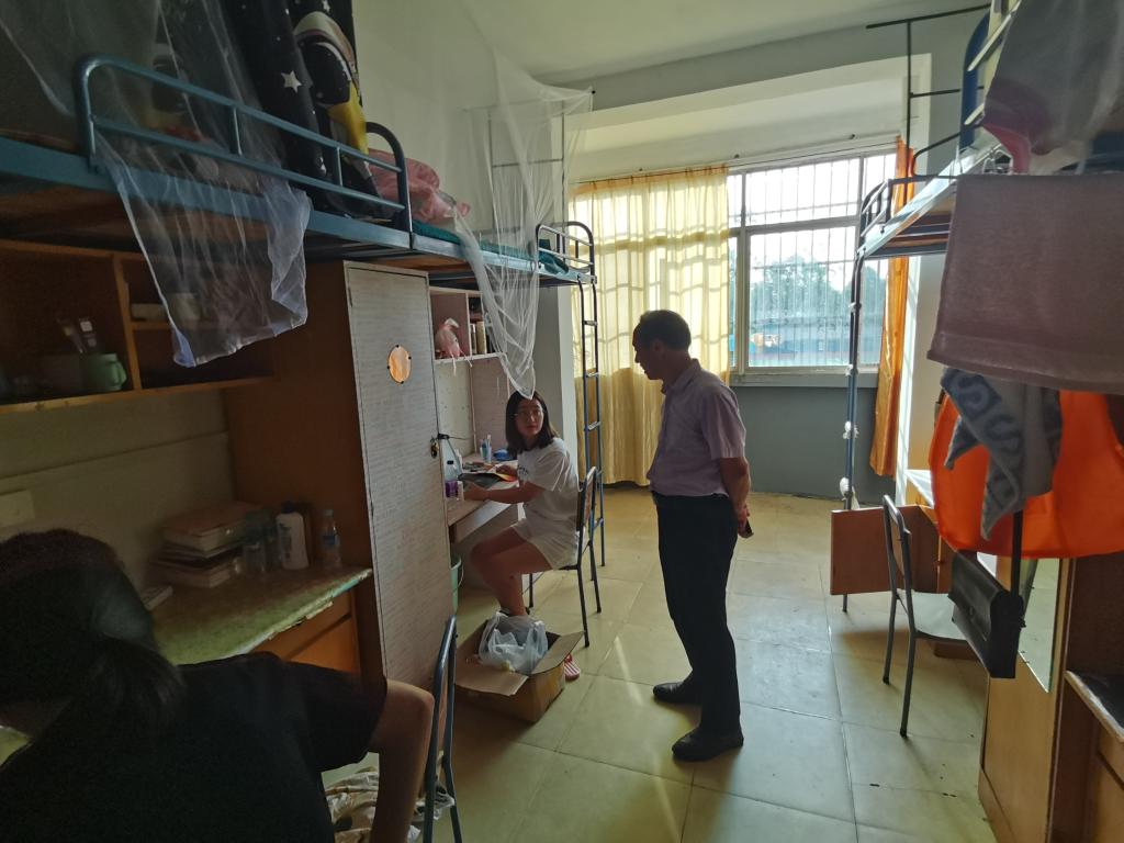 老师首先查看新生的住宿环境及宿舍安全状况,确保新生住得安心,以尽快适应老员工活。随后,老师与新生进行亲切交谈,仔细询问新生对宿舍环境、居住条件是否适应,家庭经济状况怎样。老师要求新同学务必注意财物安全、用水用电安全、人身安全;要求新同学加强内务清洁管理,保持宿舍环境卫生。老师勉励同学们勤奋学习、努力向上,培养良好的生活习惯,营造良好的学习氛围,做文明的老员工,为今后更好地适应社会打下坚实基础。