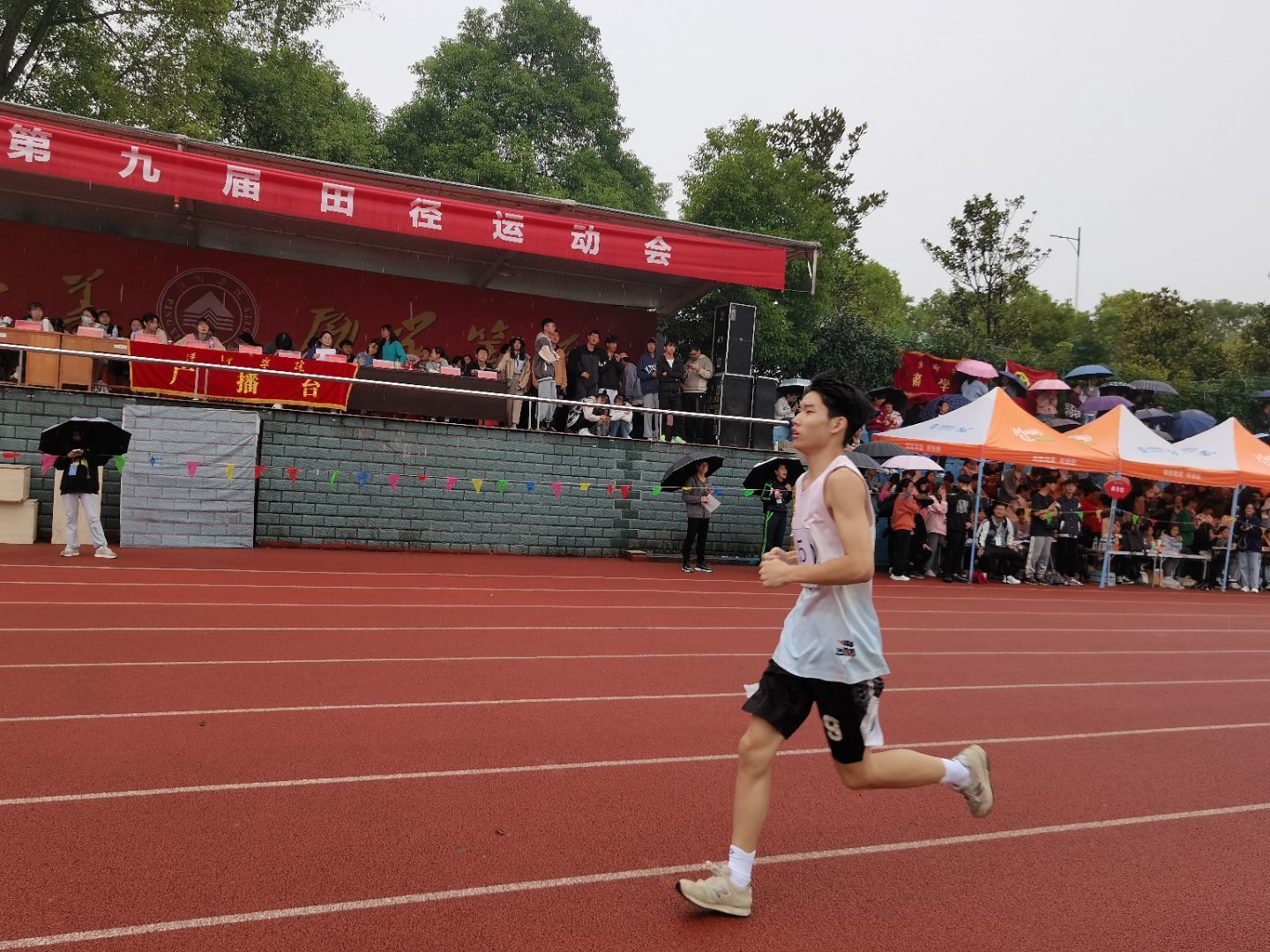 1500米比赛不仅是速度与耐力的比拼,更是意志的比拼。晏晓杰迈着稳健的步伐,凭借其自身优秀的身体素质和坚定的意志在赛道上遥遥领先。虽然他在最后的冲刺中不慎落后,却也获得了第三名的可喜成绩,并为商院斩获男子组1500米比赛季军。