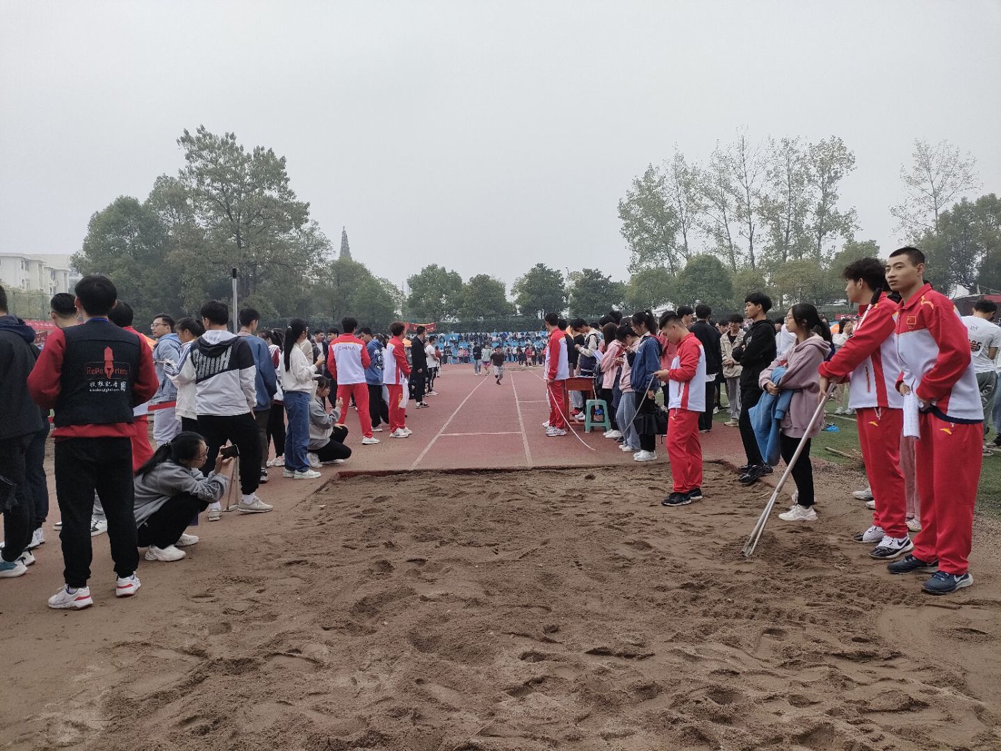 一声哨响,运动员们依次上场,蓄势待发。助跑,跳跃,最终落地,在空中留下一道优美的弧线,留在在观众的心中,留在裁判员的心中,久久不能忘怀。钟贵同学更是完美地做好这一系列的动作,一举拿下跳远比赛第四名。