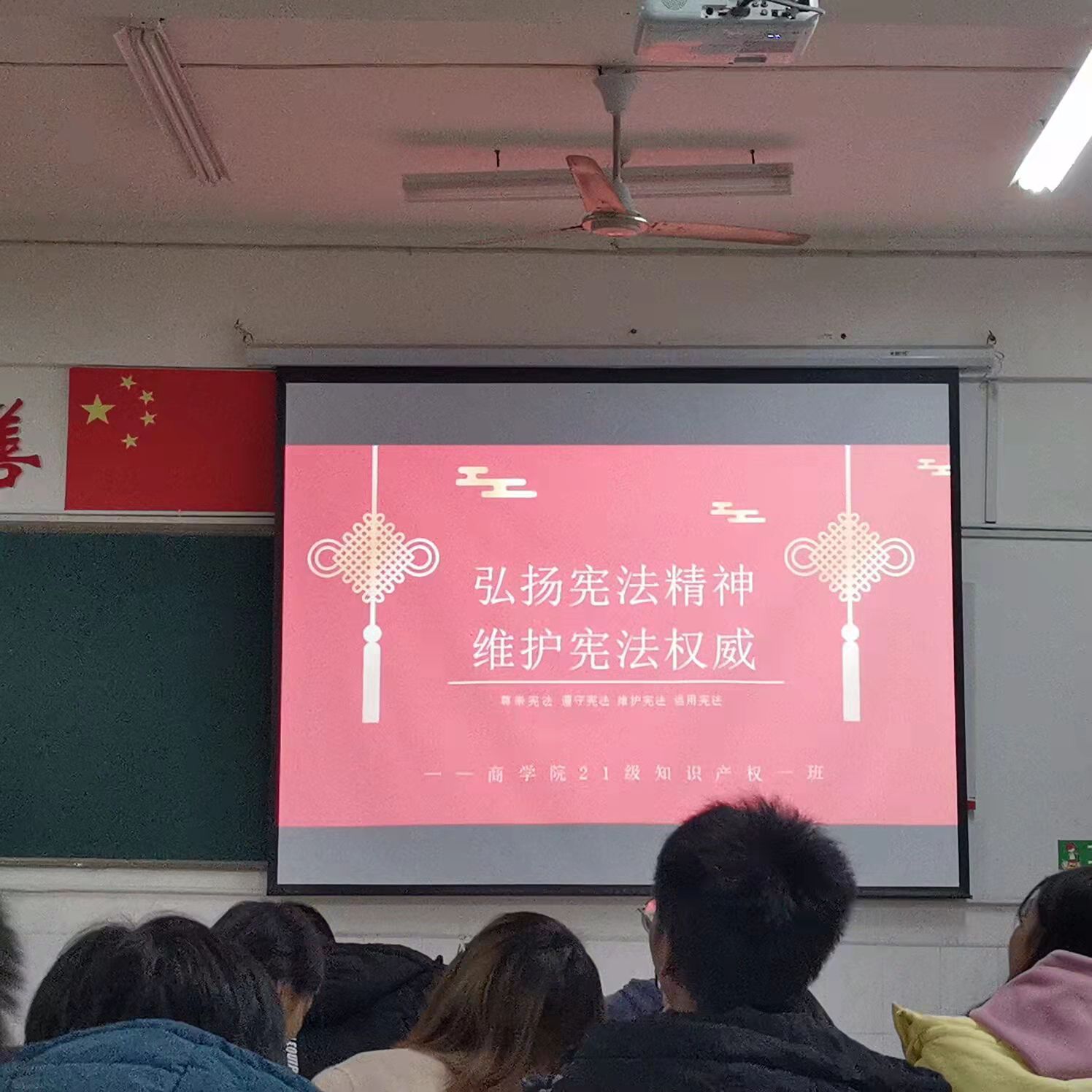2021年12月02日,PA视讯组织知识产权班级在跬步楼1610室开展“学习宪法精神,维护宪法权威”的主题班会。班会上,全体师生共同观看多个宪法知识视频,分别有《感受宪法的力量》、《我是宪法受护者,我是人民公仆》、《心中有底线,手中有尺度》等。同学们认真观看,细心体会,接受宪法的熏陶。随后,员工代表邝思垚上台演讲《宪法在我心中》。