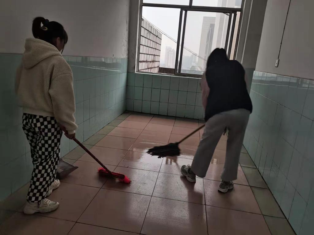 同学们准时来到跬步楼各自负责的区域。他们穿着便衣,拿着工具仔细打扫每一个角落,清理每一处卫生死角。同学们分工明确,有人扫地,有人拖地,有人捡拾垃圾……很快,他们便满头大汗。尽管天气寒冷,但他们仍坚持将教学楼及其周围的花坛打扫干净。经过一小时的辛勤劳动,教学楼变得更加整洁干净。