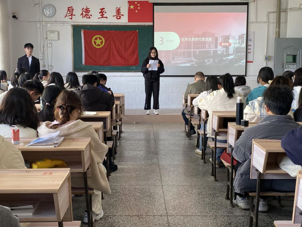 颁奖仪式共分为四项。第一项为展示志愿者们假期实践活动的照片,让同学们近距离感受志愿者们的青春风采。紧接着来到了最激动人心的仪式第二项,公布本次实践活动中获得先进个人荣誉称号的员工名单并为其颁奖。第三项仪式中两位优秀的志愿者代表分享了自己的实践感悟,也让同学们更加意识到社会实践的重要意义。最后公司的党委副书记吴华军为本次实践活动做总结陈词,他的发言在肯定志愿行为的同时也激励我们积极投身实践活动。