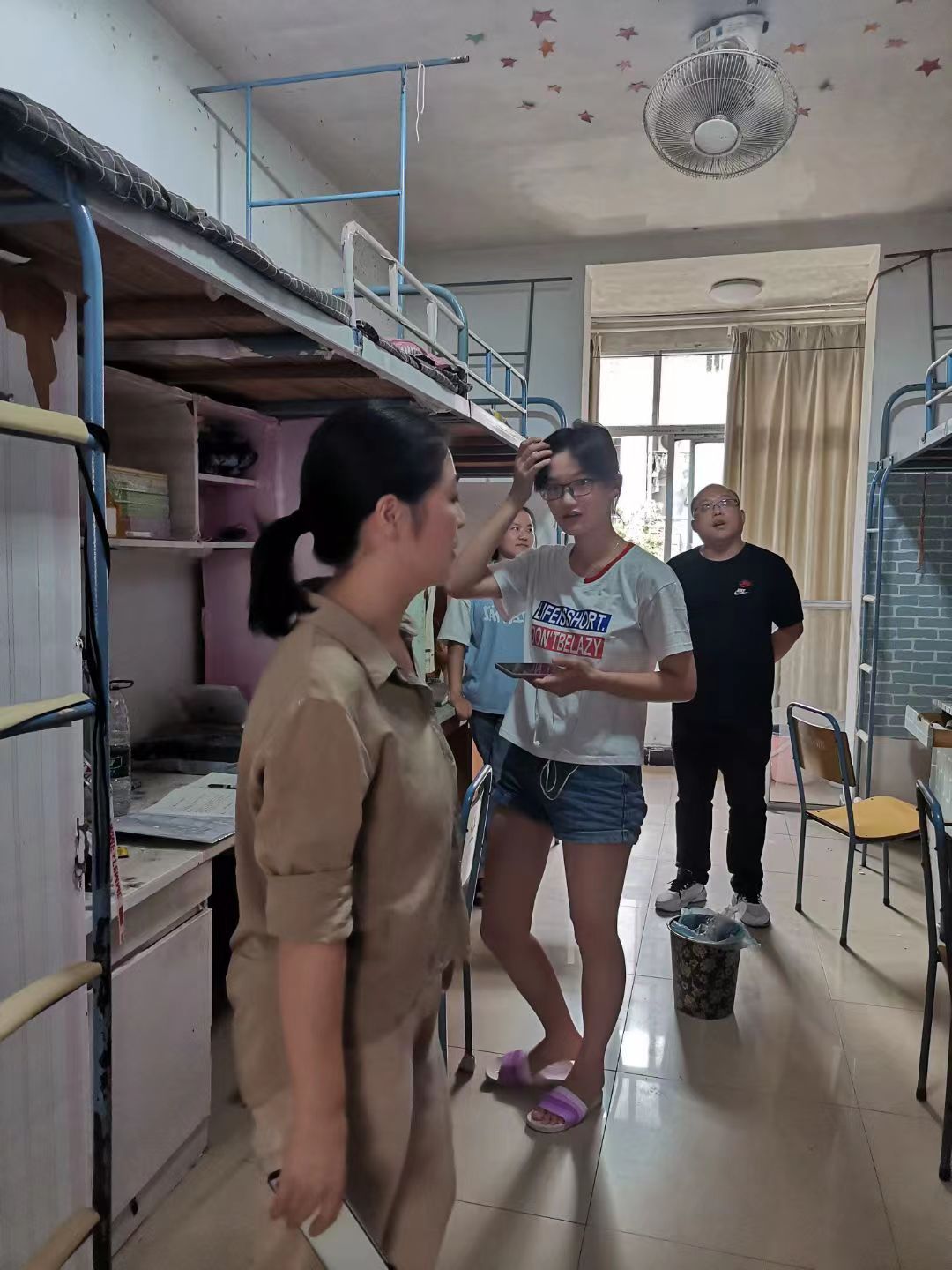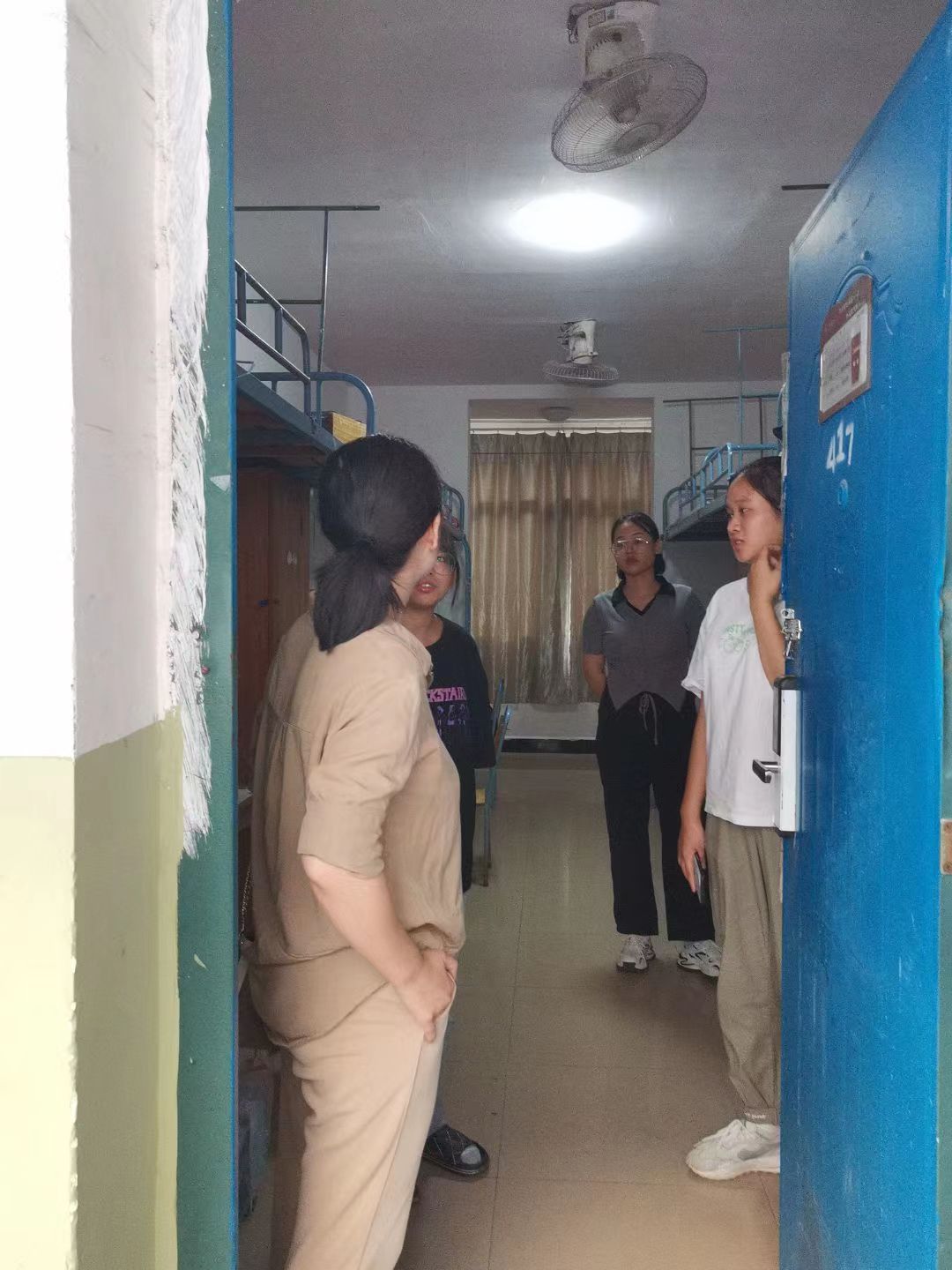 罗燕妮老师深入寝室,贴心询问了新生的近况,了解同学们的困难与问题并且耐心进行解答,并且向新生们普及了防诈骗知识以及寝室安全用水用电问题,同时告诉同学们应该培养一个良好的宿舍文化。还与新生分享了自己上学时的宿舍生活以及求学经历,希望同学们能轻松自如地迎接新学期的到来。