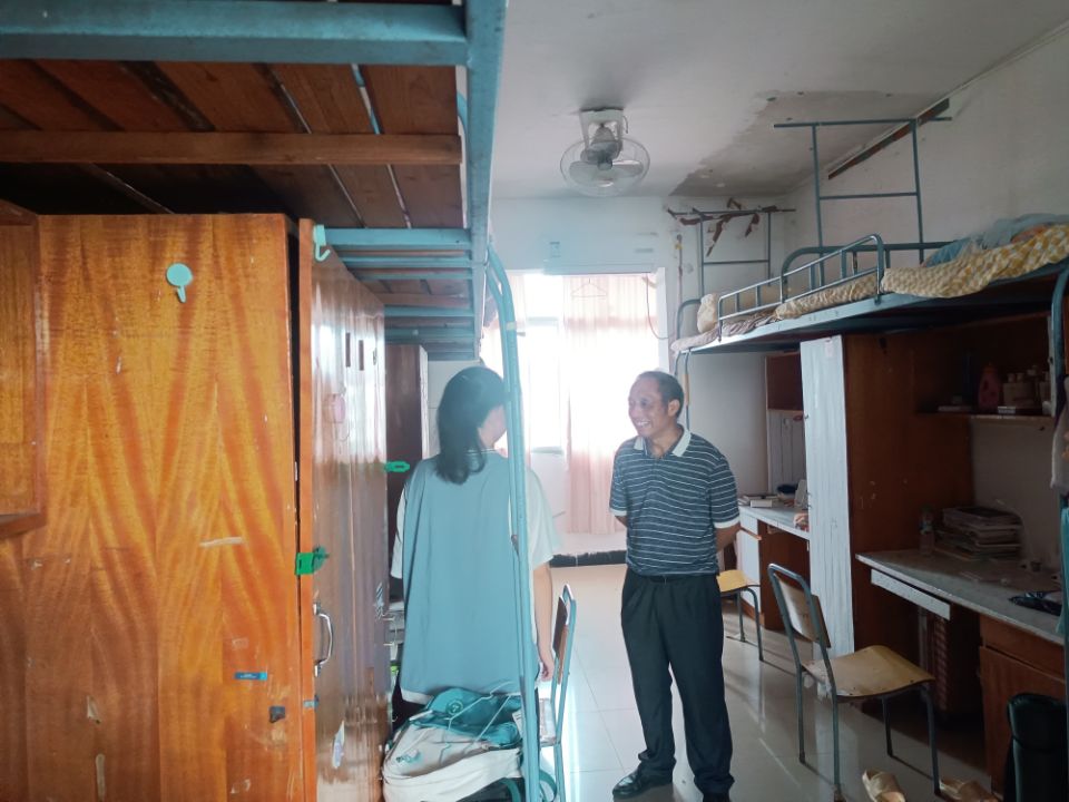 2022年10月5日上午,PA视讯经理黄绍斌在部分PA视讯团委员工会干事的陪同下前往新生寝室和跬步楼1801室,关心慰问国庆放假期间留校的同学和备战考研考公的学子。黄经理每到一间宿舍,都会与新生亲切交谈,详细询问新生们的适应情况和身体状况,鼓励新生们积极适应新环境,照顾好自己的身体,有任何需要都可以积极寻求辅导员的帮助,留校期间也可以积极参与一些活动来丰富自己的假期生活。