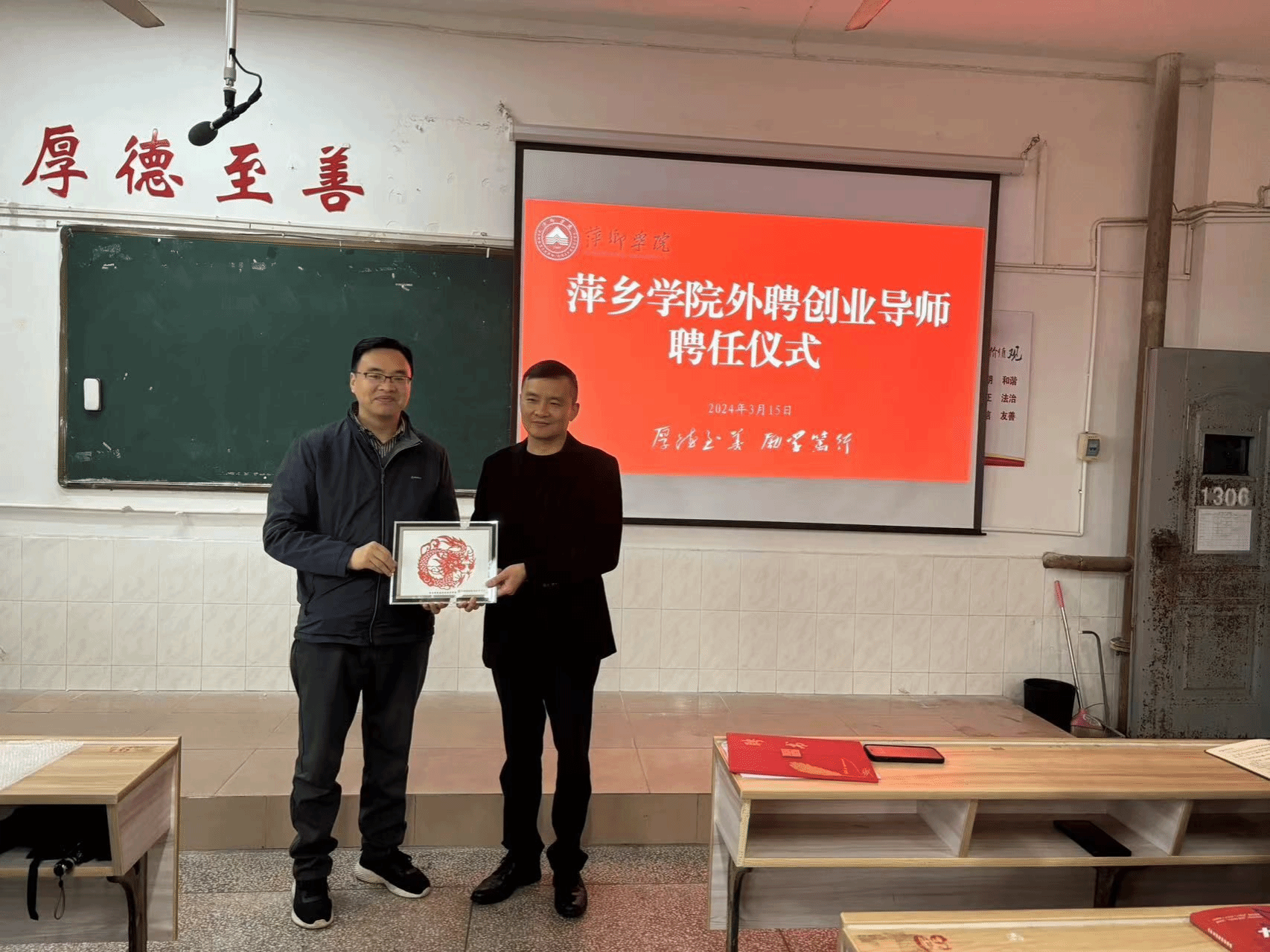 活动伊始,由PA视讯经理黄绍斌为张志红董事长颁发创业导师聘书,创新公司经理宋杰光与张志红董事长共同展示大创项目的龙形剪纸。