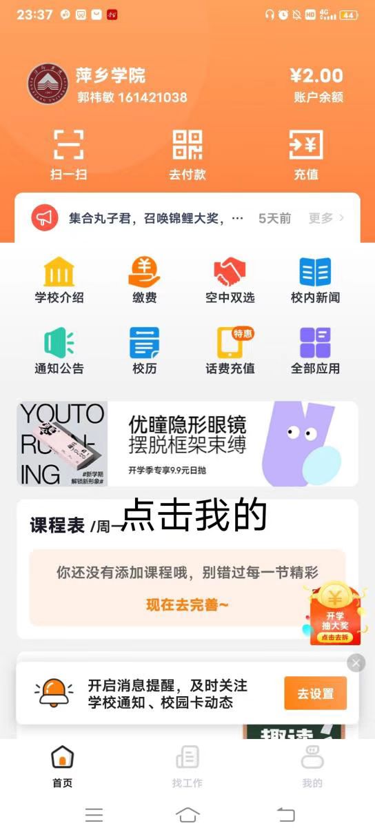 2.打开完美校园APP,点击我的