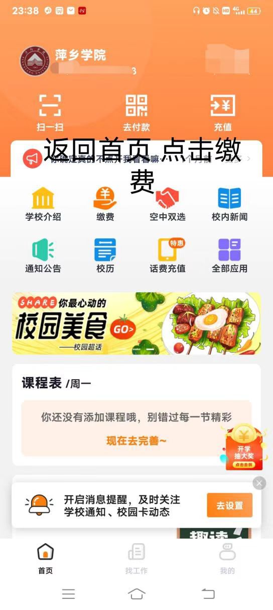 4.返回首页,点击缴费