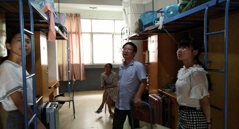 一到寝室,韩芳文书记首先详细询问了同学们是否熟记社会主义核心价值观,然后查看了寝室的卫生状况。在经过寝室楼道的时候,老师们一一查看了消防设施,看设备是否齐全。一路上韩芳文书记还与老师们讨论部分需要整改的寝室,比如线路布置、晒衣场建设等。