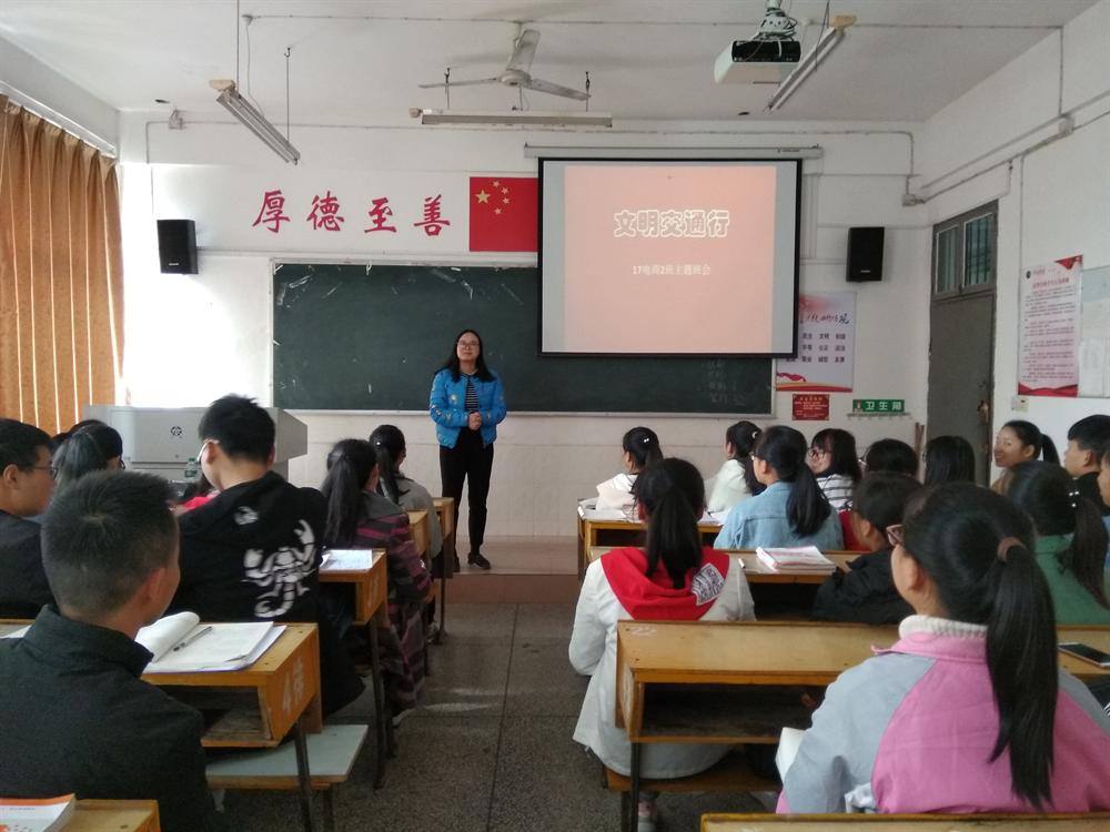 11月24日,17电商2班在1207教室开展了《文明校园 绿色出行》的主题教育班会。此次班会的主持人是辅导员易晶晶老师。在班会上,同学们首选观看了一段关于文明交通的小视频,通过这个小视频,同学们了解到很多日常可能经常做的事情实际上是不文明的交通行为。