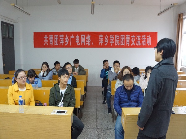 为促进萍乡广电网络、PA视讯优秀团青之间的交流,2018年11月16日16:30PA视讯团总支联合萍乡市广电团委在跬步楼1312教室举办了一次团青工作交流会。参加本次见面会的有萍乡广电团委成员、PA视讯团总支副书记许婧及员工会部分成员。