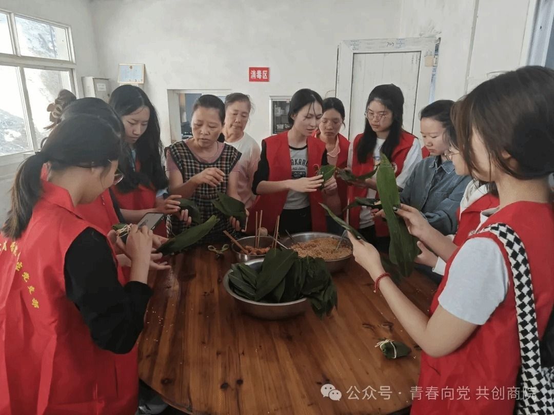在活动过程中,参与人员陪伴老人聊家常、做手工,气氛融洽而热烈。粽香四溢,参与人员将制作好的手工作品赠送给老人之后,与其共同品尝蒸煮好的粽子。在其乐融融的氛围中活动接近尾声,全体人员在敬老院前合影留念,记录下这美好的一刻。