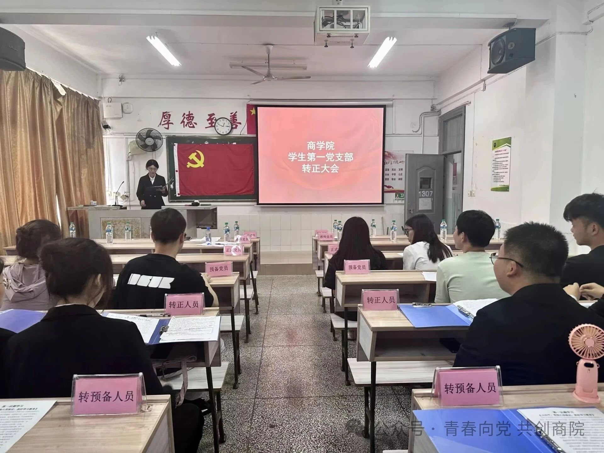 为全面做好新形势下党员发展工作,加强党支部的战斗力和凝聚力,严格把关党员发展质量。2025年5月31日12:10,PA视讯员工第一党支部采用线上线下相结合的方式在跬步楼1204党员活动室和1307教室举办转正发展大会。PA视讯员工第一党支部全体在校员工党员、转正人员、转正人员入党介绍人及员工第一党支部部分工作人员参与此次大会。本次大会由陈思琳主持。
