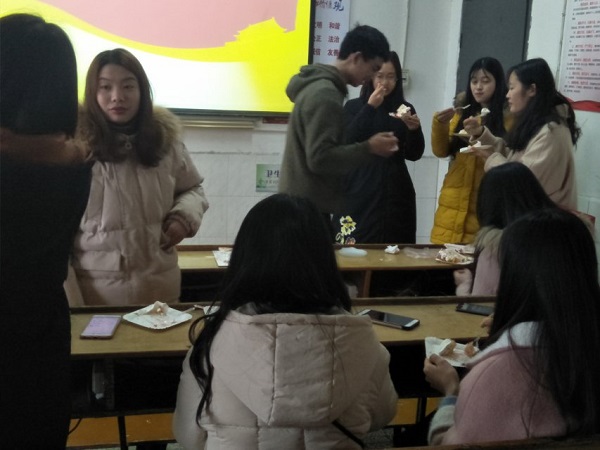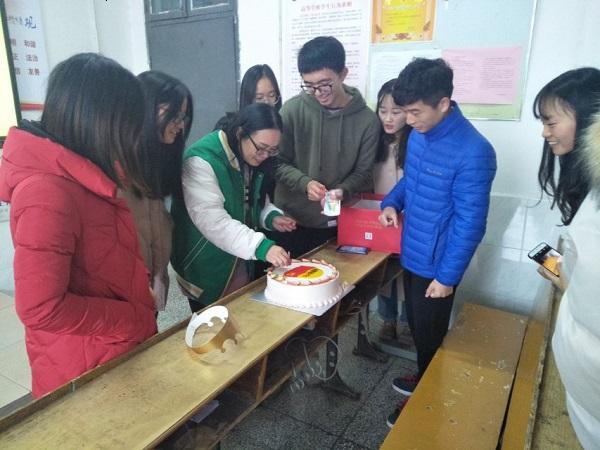随后,易晶晶老师为在场参加活动的人员切分蛋糕,庆祝“政治生日”。