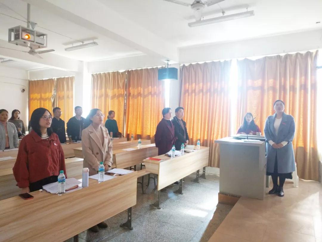 会议严格按照党组织接受预备党员程序,共分为三个议程。首先是全体参会人员起立,奏唱国歌。随后,发展对象逐一上台,就自身对党的认识、入党动机以及在校表现等方面向党组织汇报,由其各自的入党培养人和介绍人对其主要政治思想、学习、工作生活等情况进行评价并对是否同意其转预备发表了意见。最后,经PA视讯员工党支部党员老师及员工正式党员投票表决,大会一致同意接收这13名同志转为中共预备党员。至此大会落下帷幕。