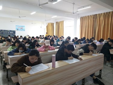 为了保证考试的公平性,本次比赛采取一排三人的方式。选手在签到后,按顺序就坐,等候工作人员分发试卷。在比赛开始之前,监考人员强调考试规则。当其介绍完规则并分发试卷之后,比赛正式开始。本场竞赛采用A、B卷模式,交替作答,并且考试期间配有多名监考人员,来回巡视。开考后,选手们坐在各自的位置上进行作答,考场里笔与纸摩擦的声音彻响于耳畔。待到考试结束后,选手有序离场,监考人员依次收卷。至此,本场竞赛考试阶段圆满结束!