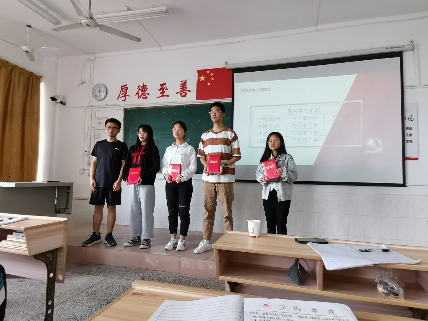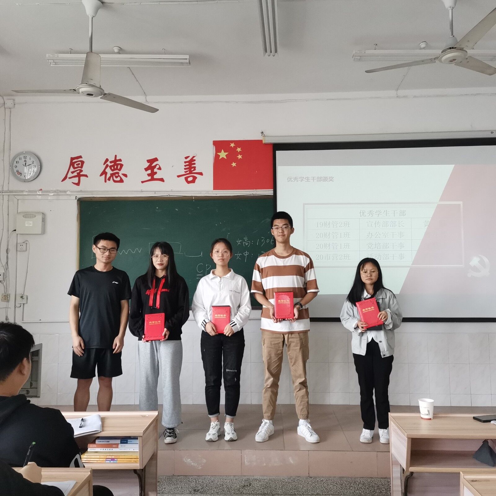 PA视讯员工党支部坚持每月对优秀员工干部进行表彰以号召广老员工干部努力学习,苦练本领,服务师生,做一名有能力、有责任、有担当的青年员工干部。活动开始,饶庆淦宣读了这一批优秀员工干部的名单,他们分别是宣传部部长黄颖、办公室干事曾开慧、党培部干事汪慧敏、活动部干事冯锐鑫。随后,PA视讯员工党支部副书记黄康海为获奖人员颁奖。此次的颁奖仪式在合影中落下帷幕。